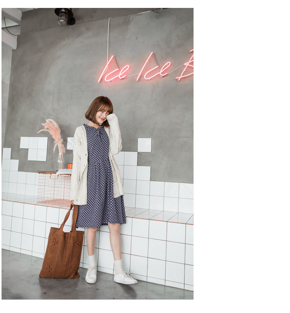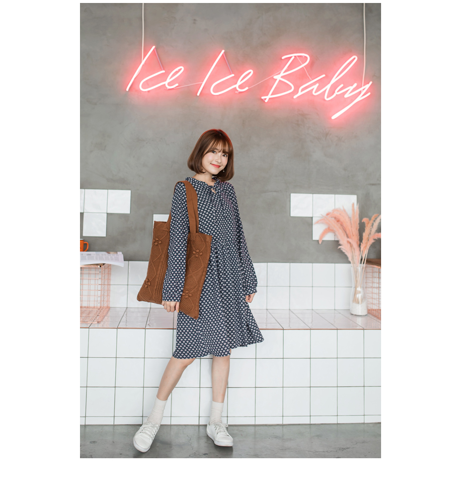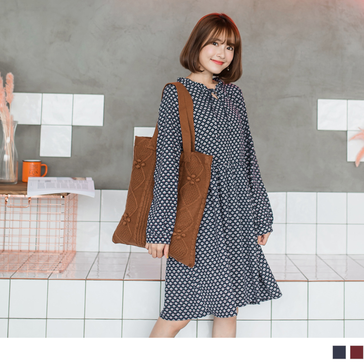 OB嚴選流行女裝OB嚴選高含棉滿版碎花小荷葉領結綁繩磨毛洋裝