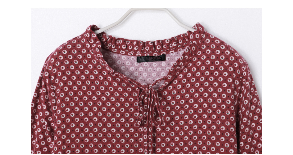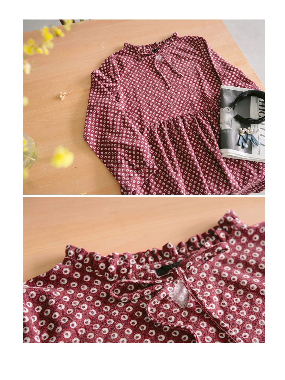 OB嚴選OB嚴選高含棉滿版碎花小荷葉領結綁繩磨毛洋裝高CP值
