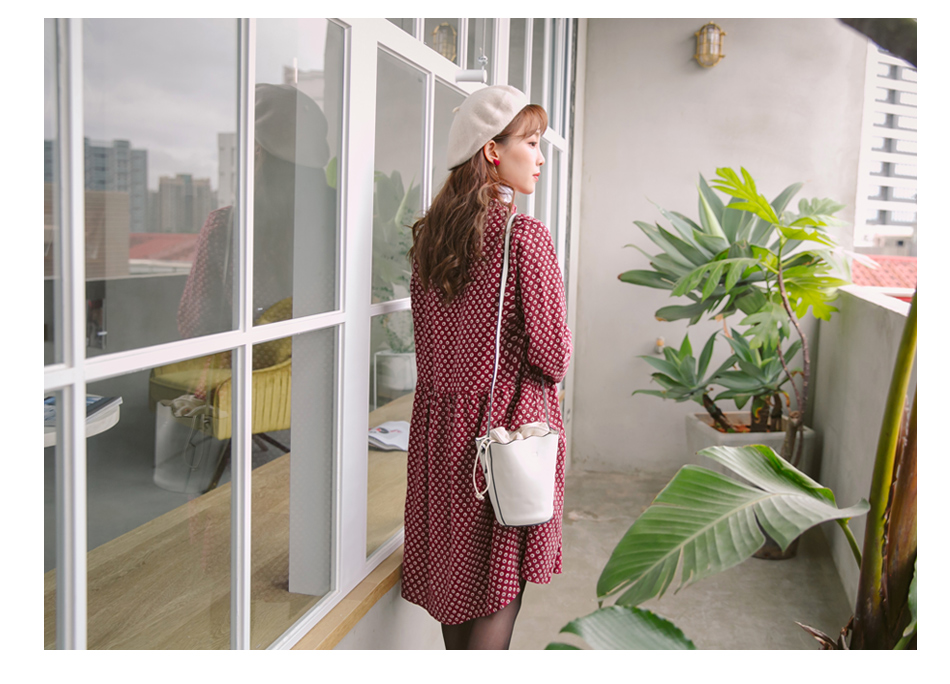 我不是很會穿搭衣服。我想找一件衣服OB嚴選高含棉滿版碎花小荷葉領結綁繩磨毛洋裝