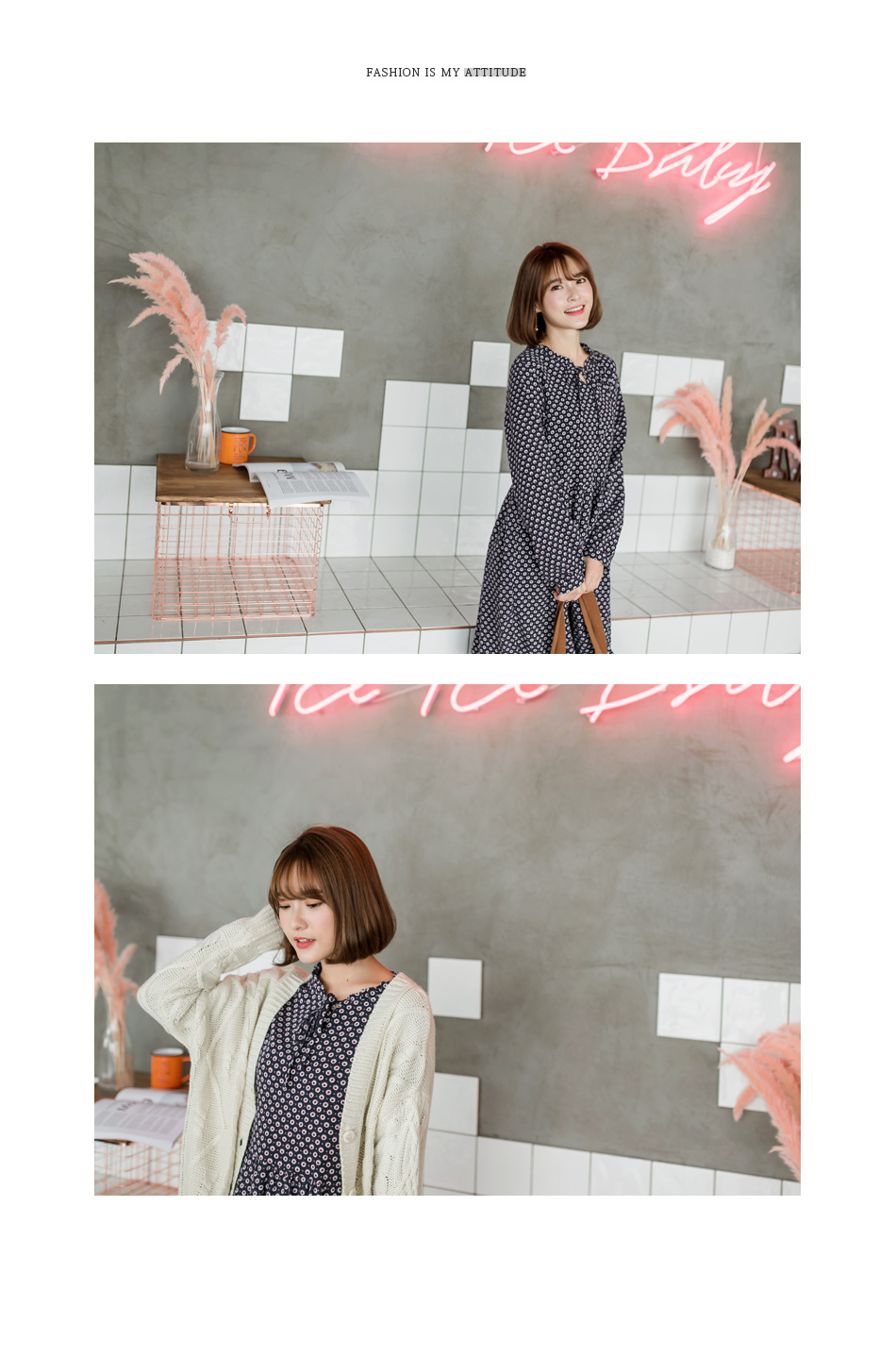 最重要的一點是我想找的那件OB嚴選高含棉滿版碎花小荷葉領結綁繩磨毛洋裝衣服