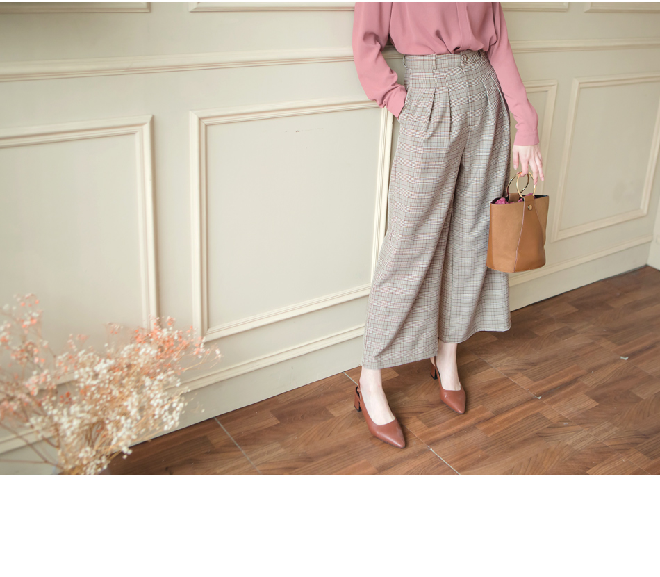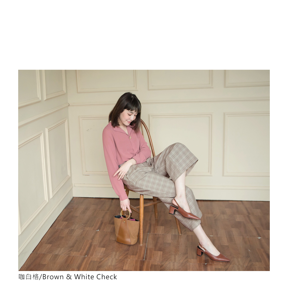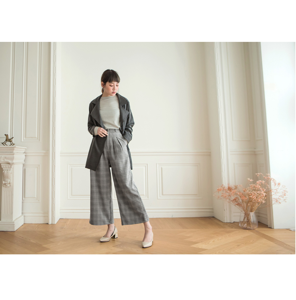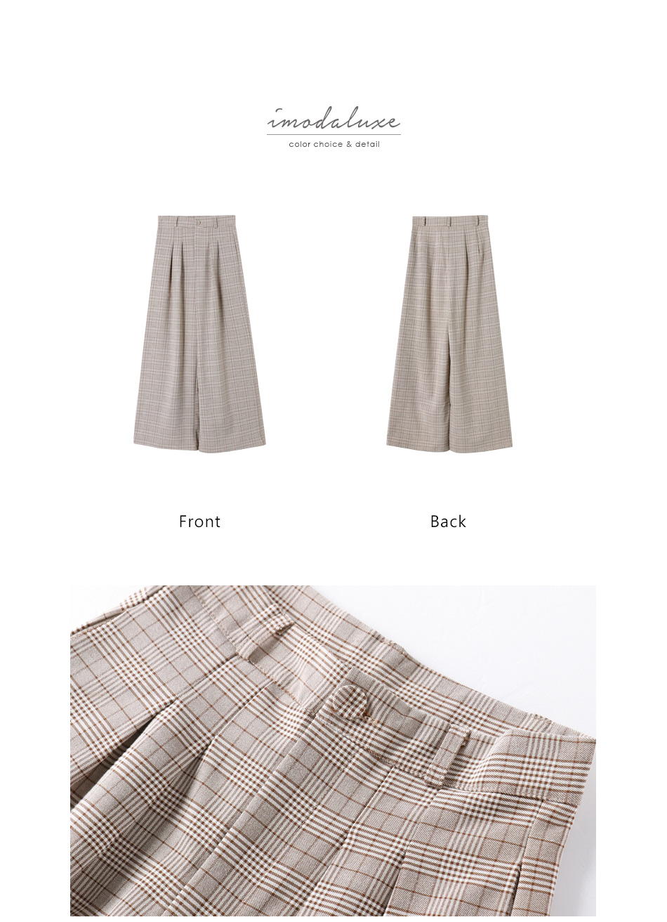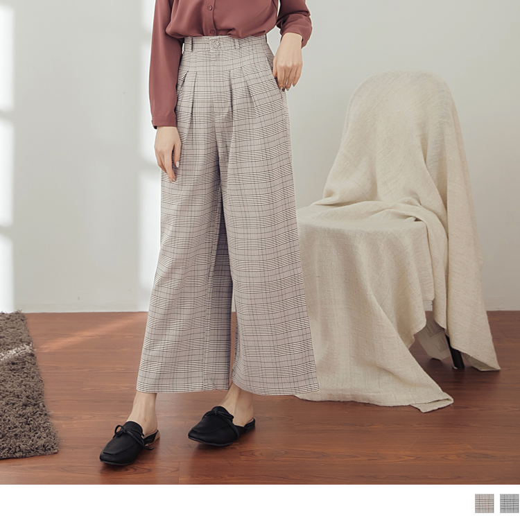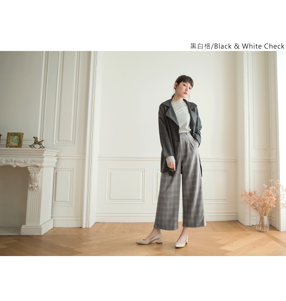 OB嚴選流行女裝OB嚴選細格紋打褶高腰落地寬褲