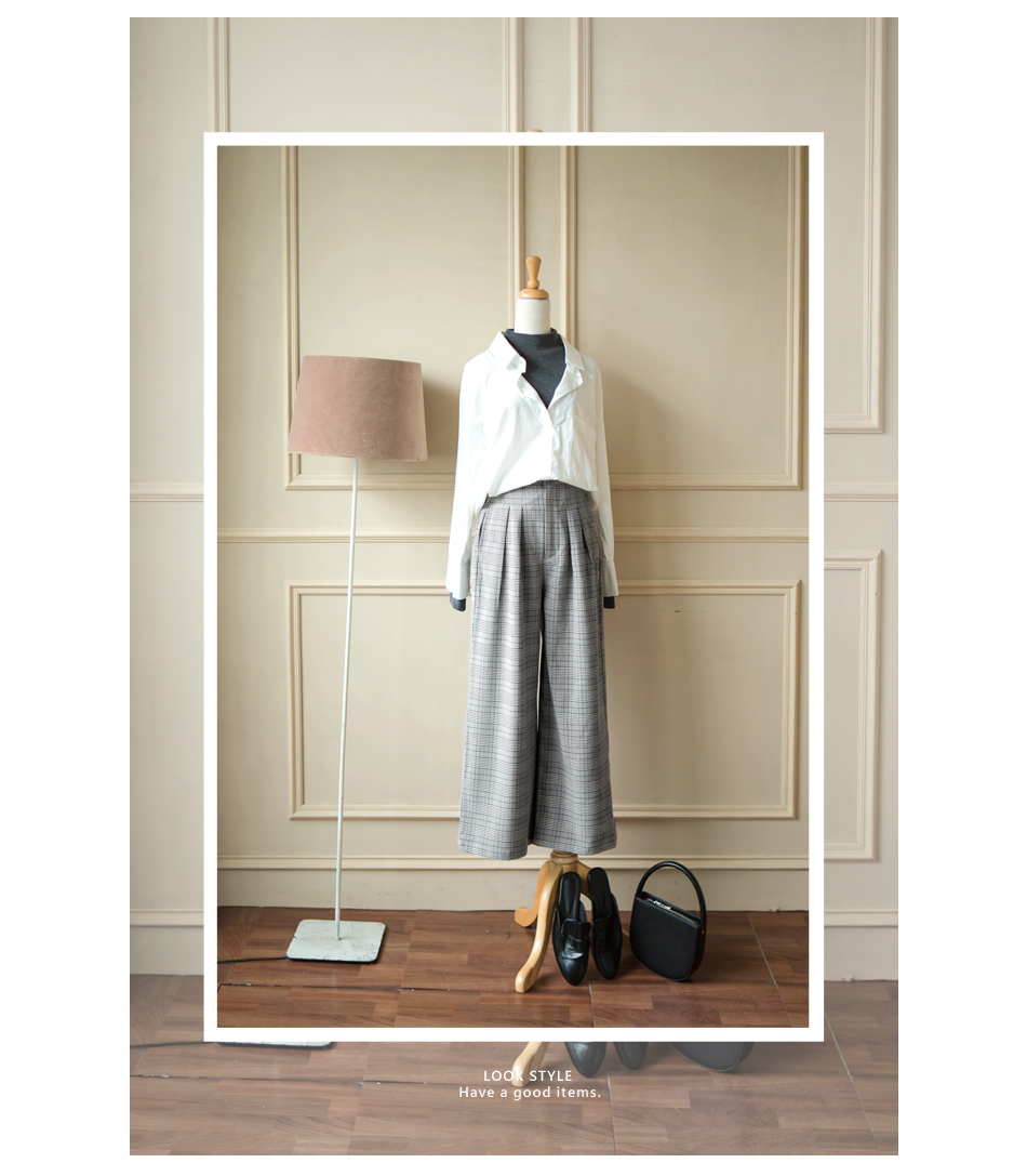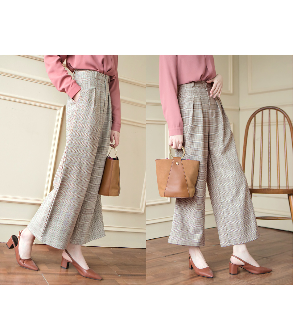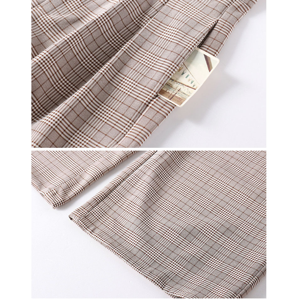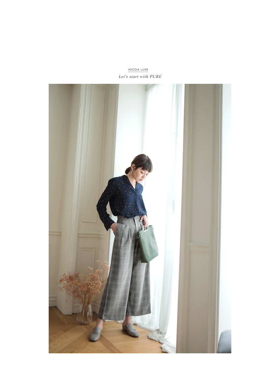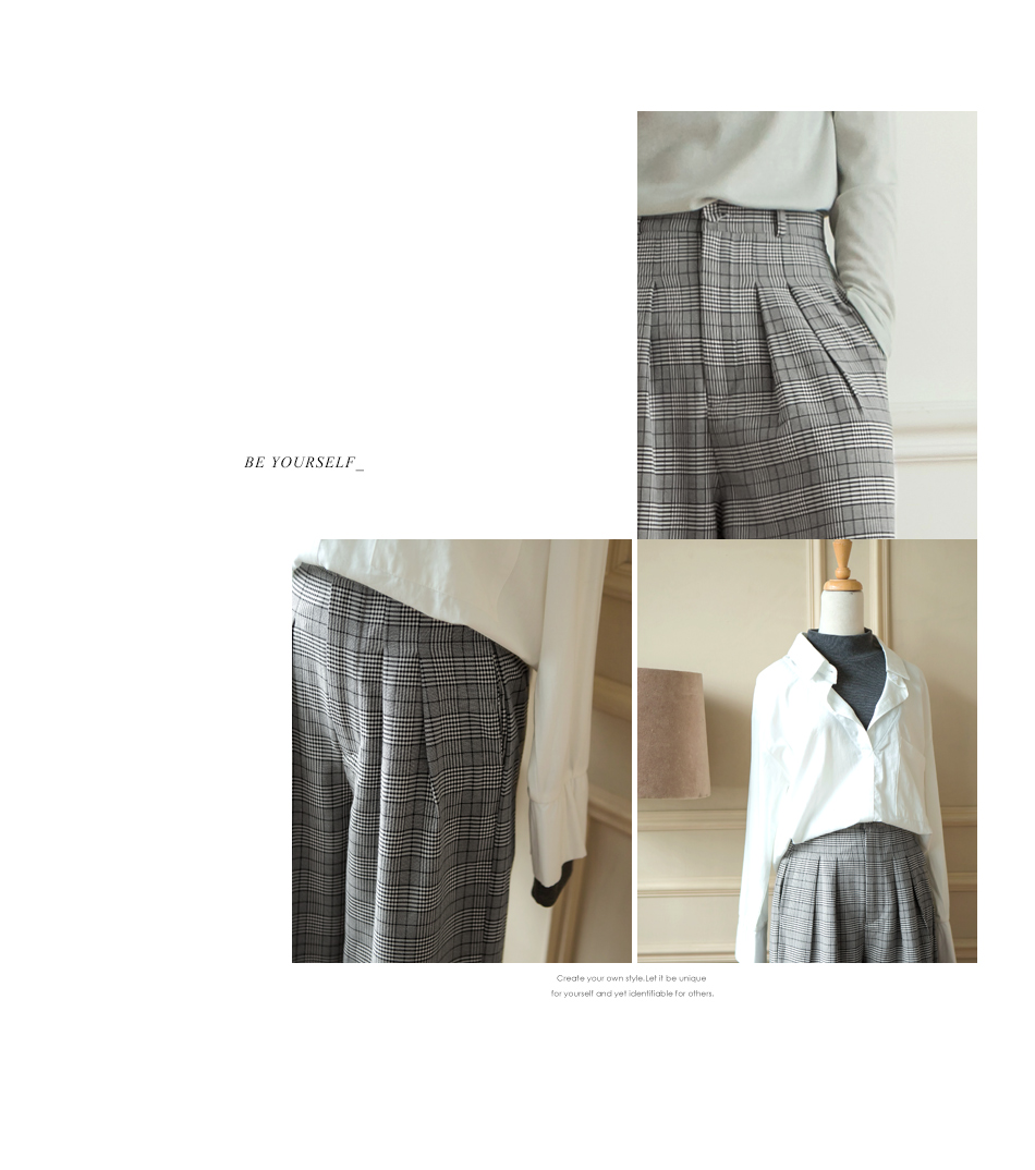 OB嚴選流行女裝OB嚴選細格紋打褶高腰落地寬褲
