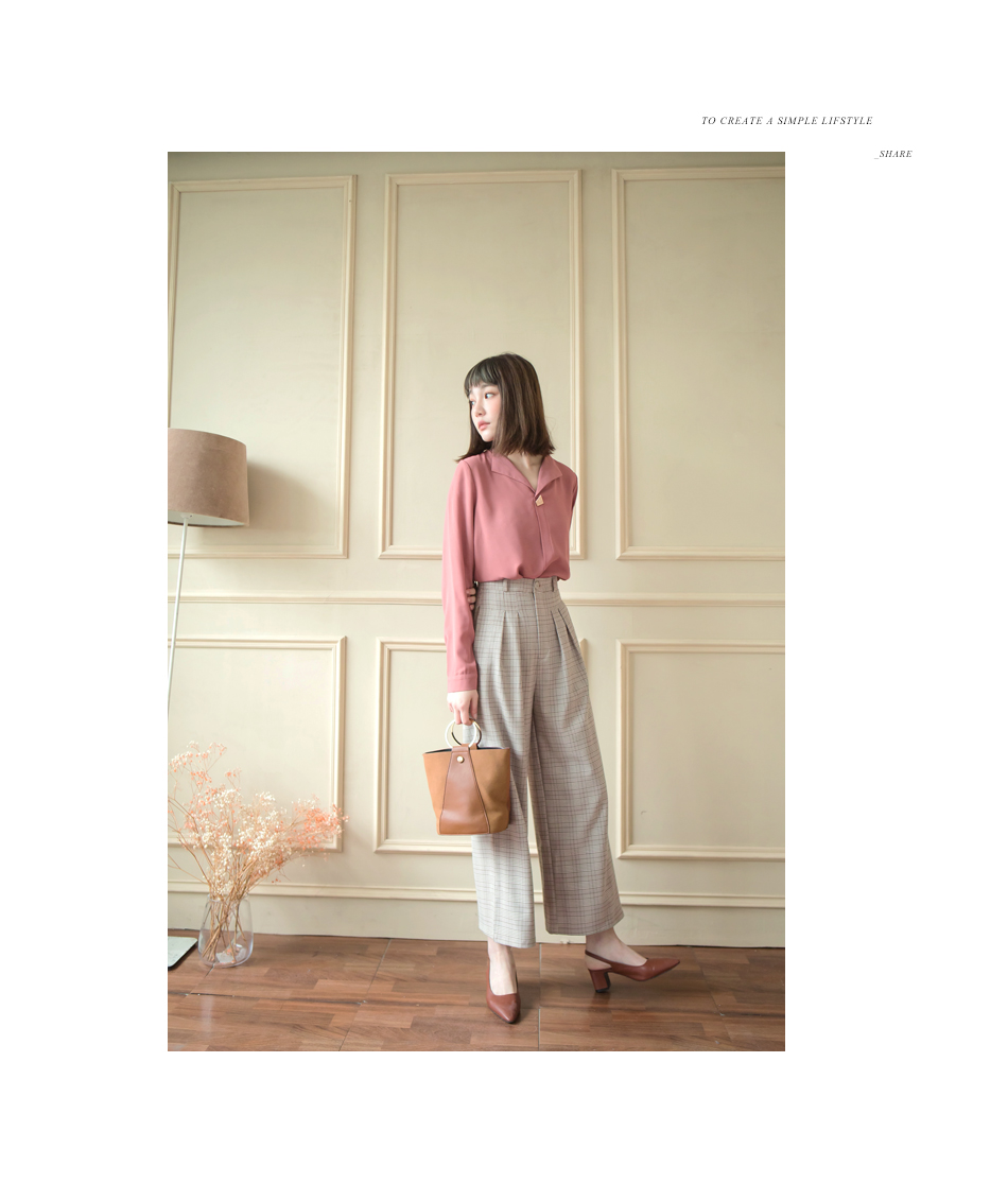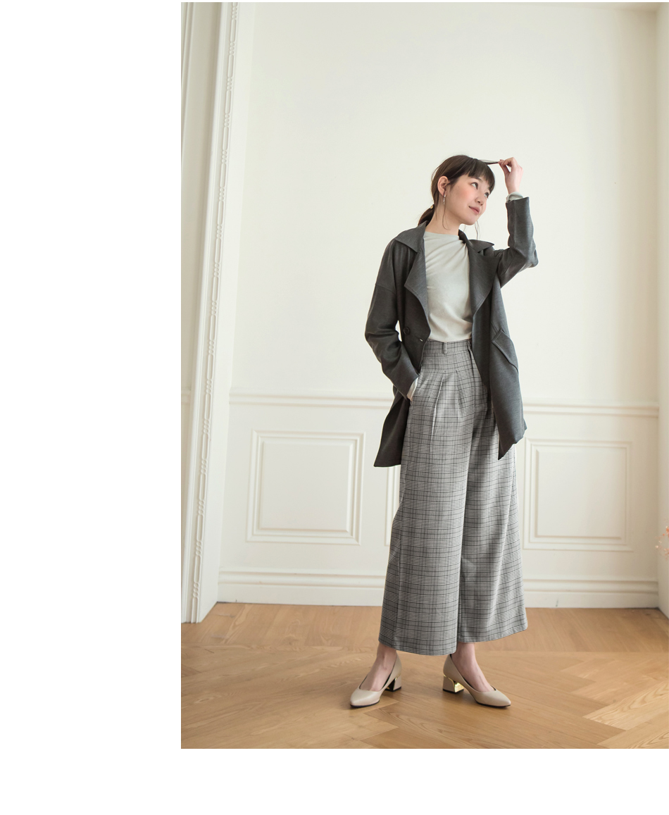 最重要的一點是我想找的那件OB嚴選細格紋打褶高腰落地寬褲衣服