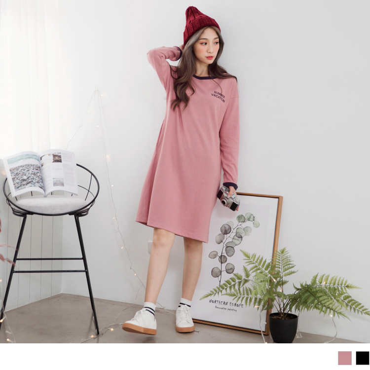 OB嚴選OB嚴選高含棉胸前字母燙印撞色洋裝高CP值