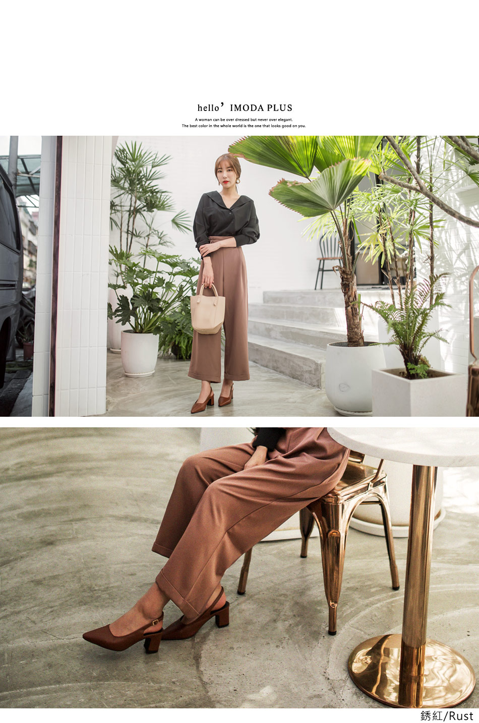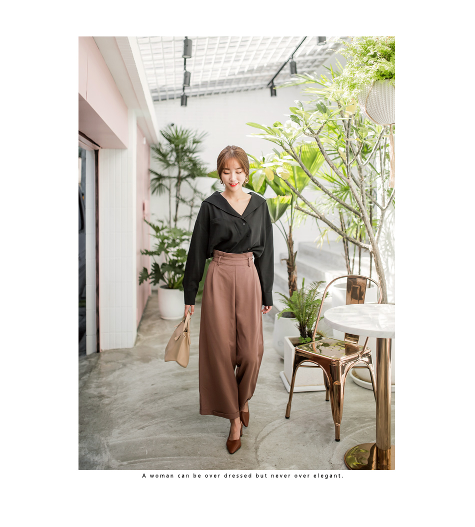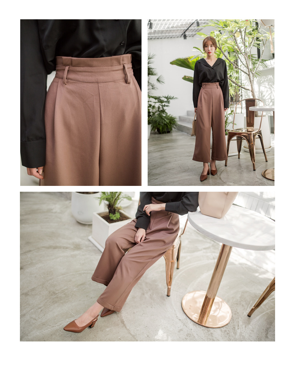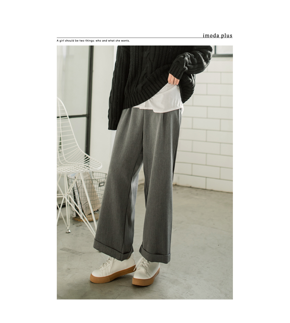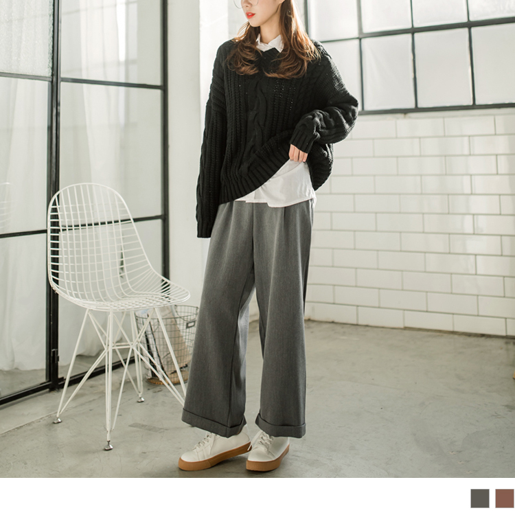 OB嚴選流行女裝OB嚴選半鬆緊腰頭打摺西裝寬褲