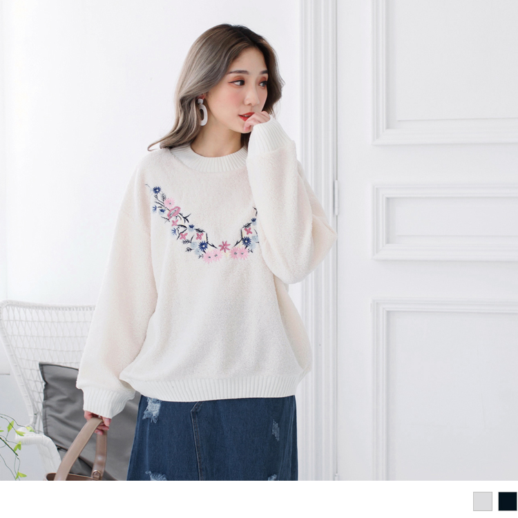 OB嚴選羔羊絨花朵刺繡寬版上衣