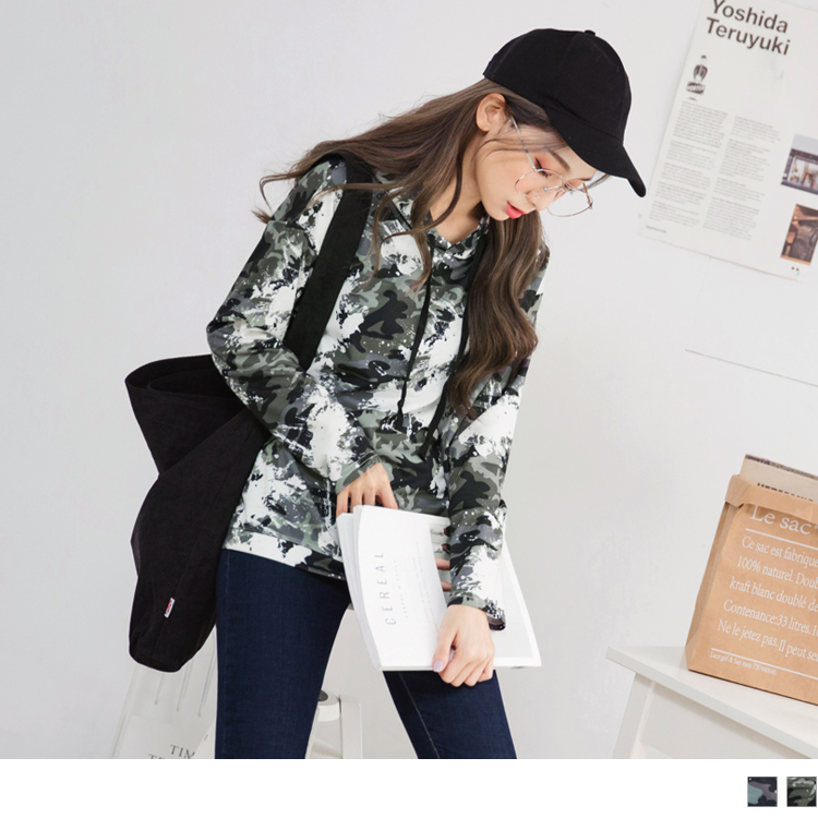OB嚴選流行女裝OB嚴選率性薰染潑漆色調迷彩連帽上衣