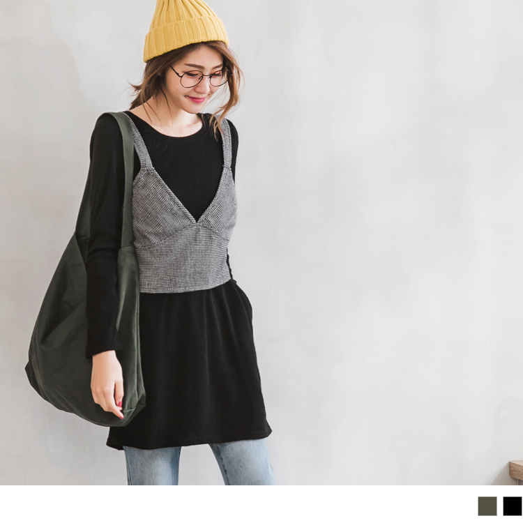 我不是很會穿搭衣服。我想找一件衣服OB嚴選兩件式千鳥格罩衫小可愛造型上衣