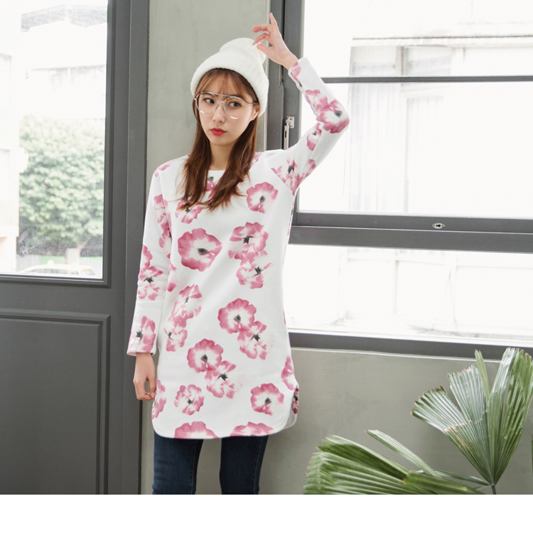 OB嚴選流行女裝OB嚴選花朵潑墨設計雙口袋內刷毛長版上衣/洋裝
