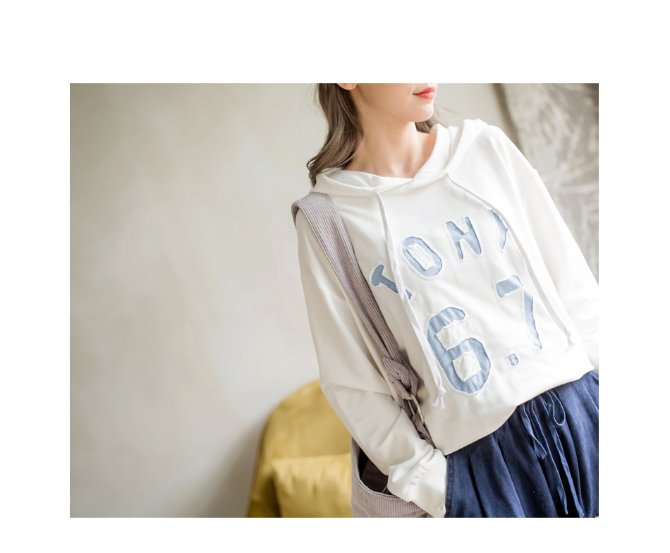 OB嚴選OB嚴選英文數字剪色貼布刺繡造型連帽上衣高CP值