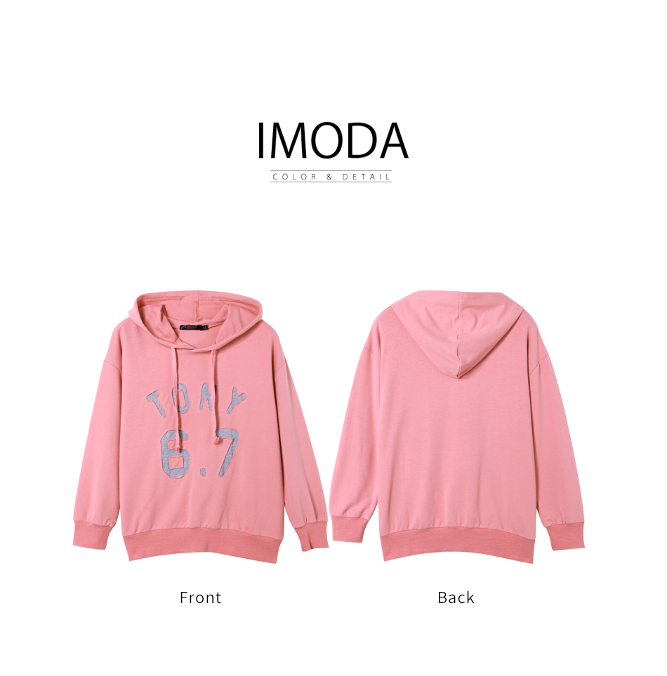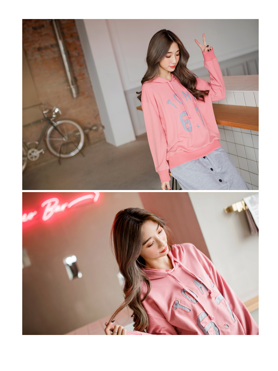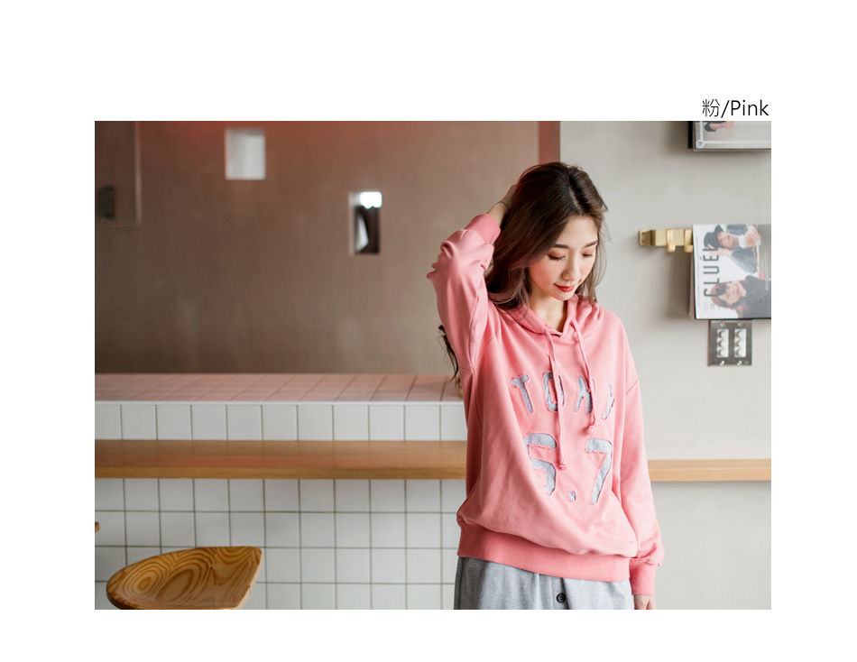 OB嚴選流行女裝OB嚴選英文數字剪色貼布刺繡造型連帽上衣