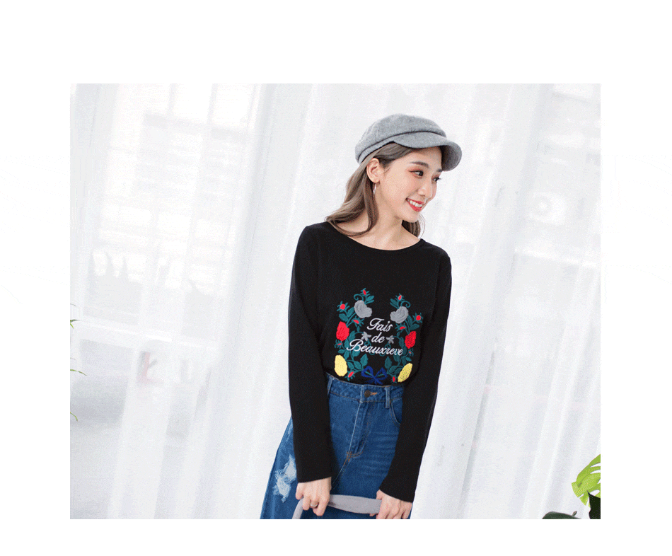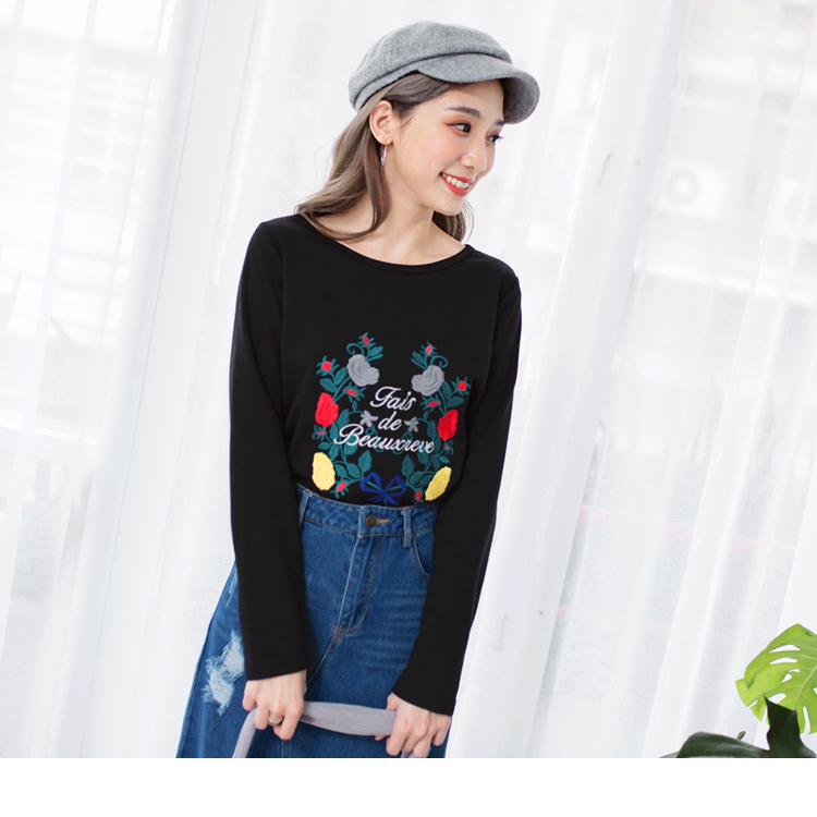OB嚴選流行女裝OB嚴選浪漫刺繡花朵英字造型上衣