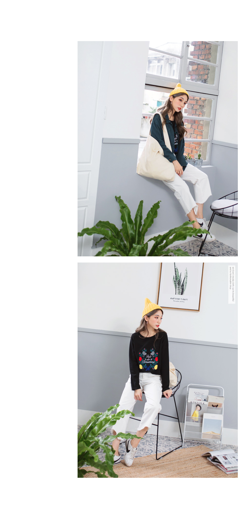 我不是很會穿搭衣服。我想找一件衣服OB嚴選浪漫刺繡花朵英字造型上衣