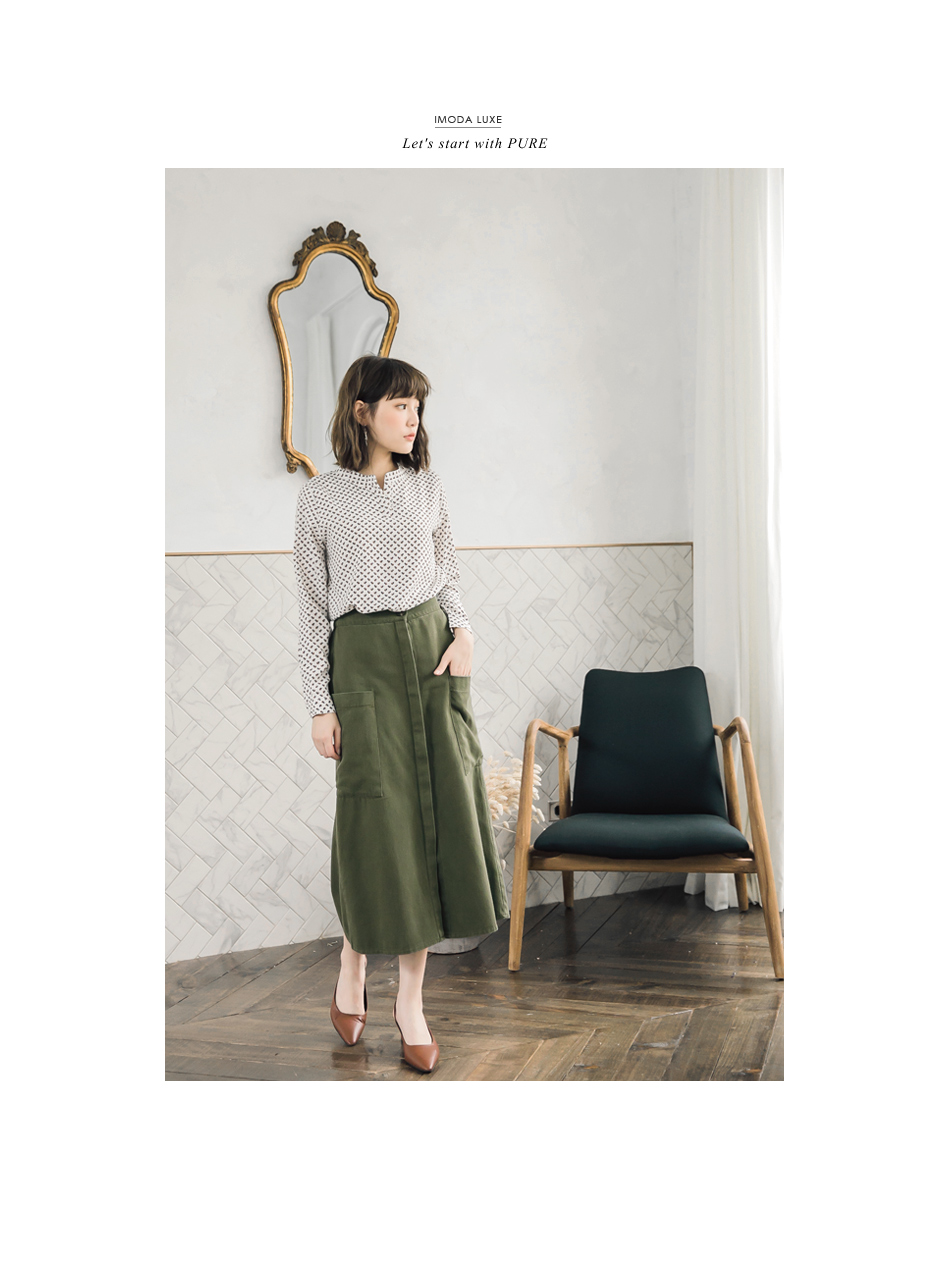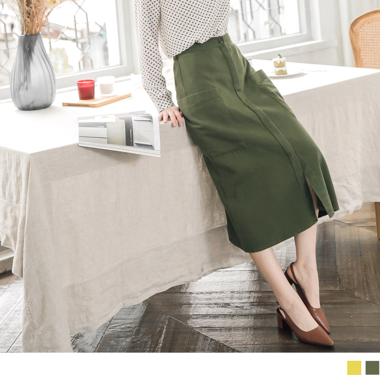 OB嚴選流行女裝OB嚴選高含棉斜紋布前壓褶開衩A字長裙