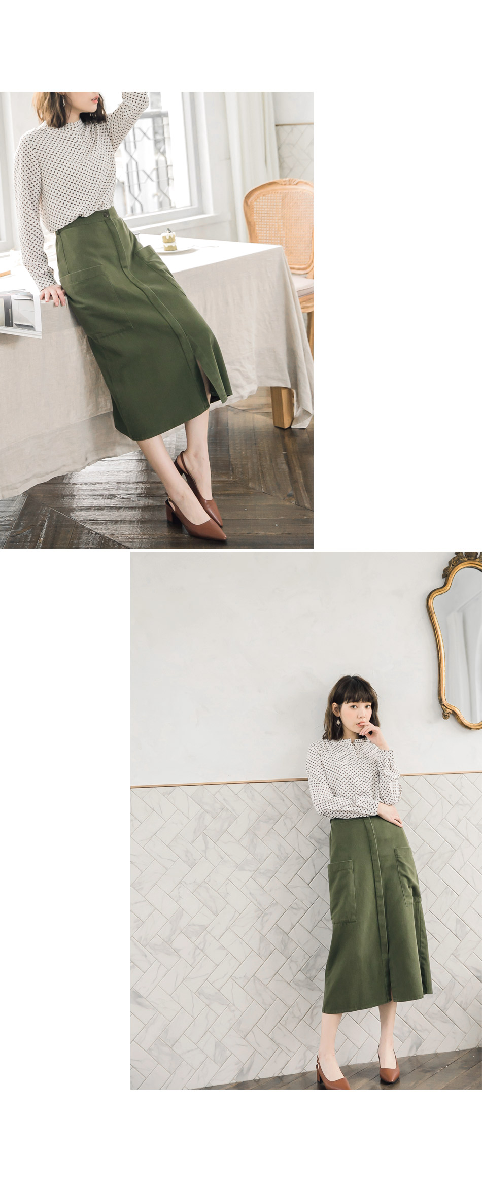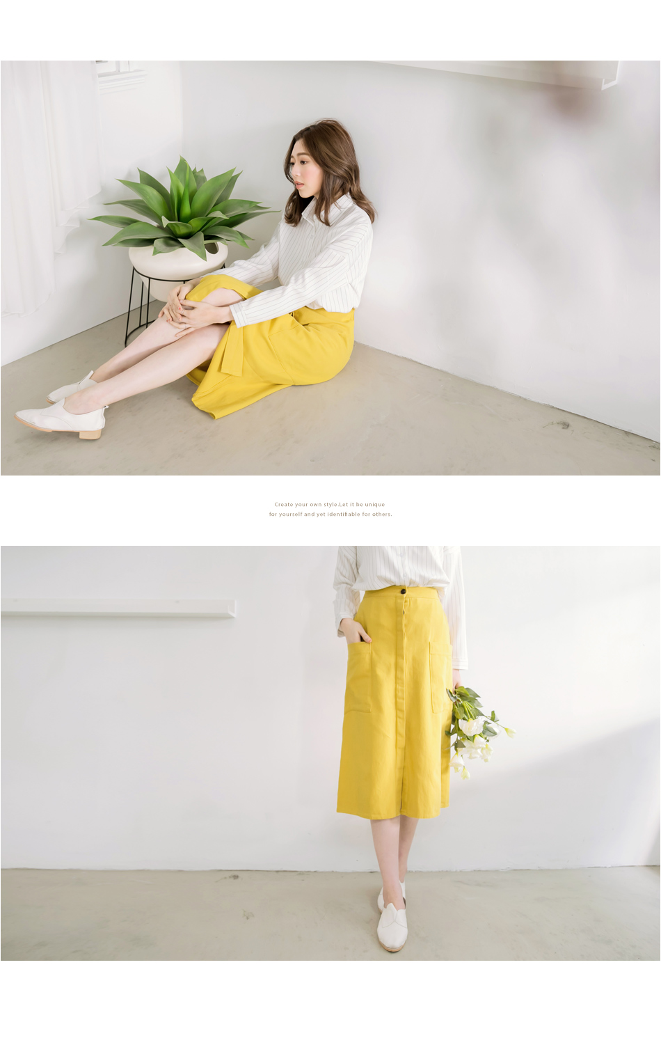 最重要的一點是我想找的那件OB嚴選高含棉斜紋布前壓褶開衩A字長裙衣服