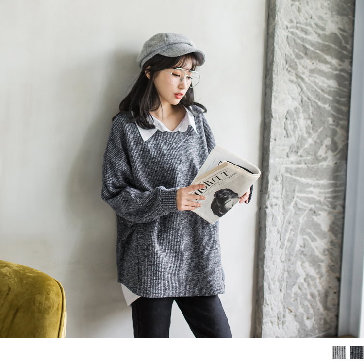 我不是很會穿搭衣服。我想找一件衣服OB嚴選混色調雙V剪裁圓弧下襬側邊車線上衣