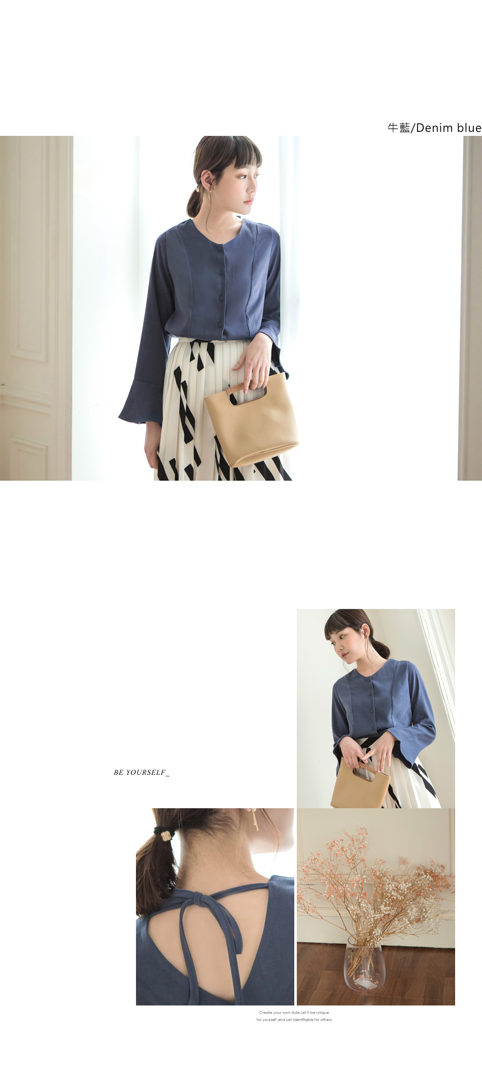 最重要的一點是我想找的那件OB嚴選磨毛手感美背設計V領喇叭袖襯衫/上衣衣服