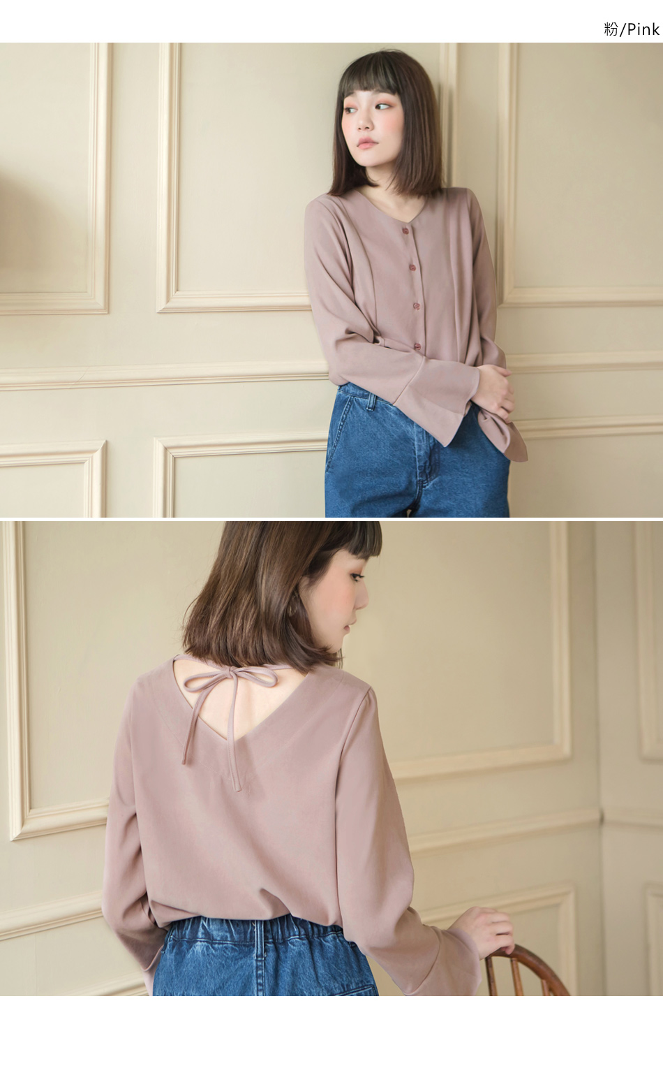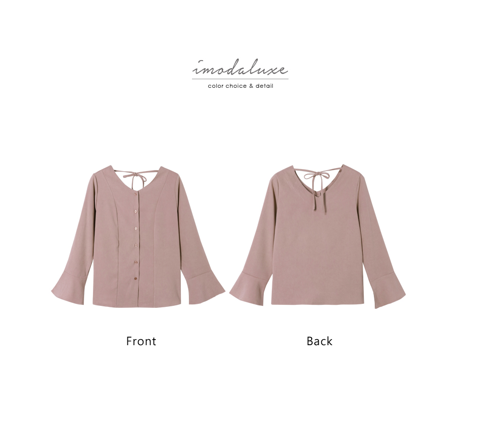 OB嚴選流行女裝OB嚴選磨毛手感美背設計V領喇叭袖襯衫/上衣